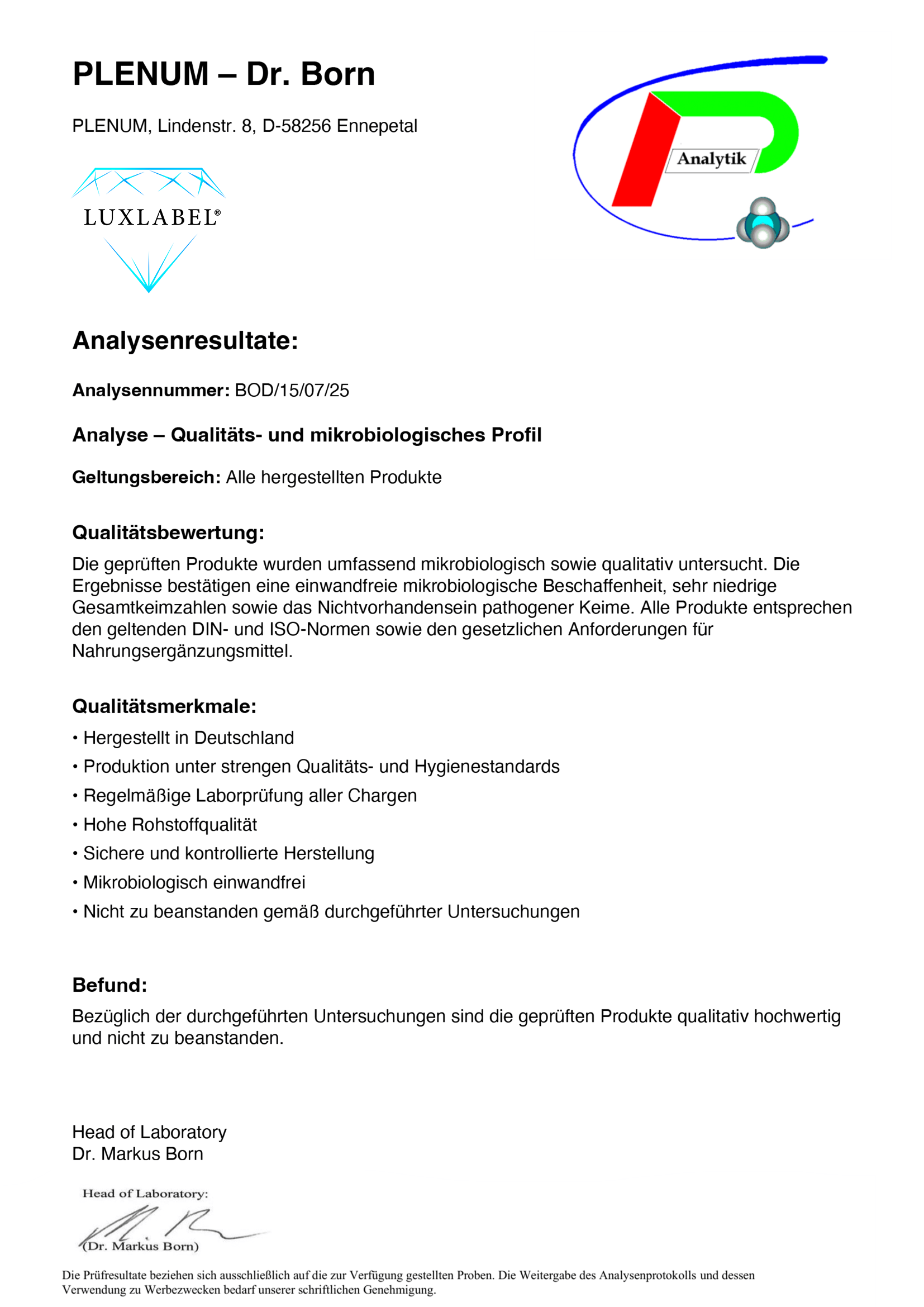 Gefiltertes Wasser, hydrolysiertes Kollagen aus Fisch Typ 1 & 3 (enthält die Aminosäuren: L-Glycin, L-Prolin, L-Alanin, L-Hydroxyprolin, L-Glutaminsäure, L-Arginin, L-Asparaginsäure, L-Serin, L-Lysin, L-Leucin, L-Valin, L-Threonin, L-Phenylalanin, L-Isoleucin, L-Hydroxylysin, L-Methionin, L-Histidin, L-Tyrosin, L-Cystein), Säureregulator: Zitronensäure, Vitamin C (L-Ascorbinsäure), Silicium (Siliciumdioxid), Hyaluronsäure (Natriumhyaluronat), Konservierungsstoffe: (Kaliumsorbat, Natriumbenzoat), natürliche Farbe: lila Kartoffelpulver, Aroma (natürliches Erdbeeraroma), Süßungsmittel: (Steviolglycoside, Sucralose), Vitamin D (Cholecalciferol), Emulgator: Xanthan, Vitamin B5 (Calciumpantothenat), Biotin (D-Biotin), Vitamin B6 (Pyridoxinhydrochlorid), Selen (Natriumselenit), Vitamin B12 (Methylcobalamin).