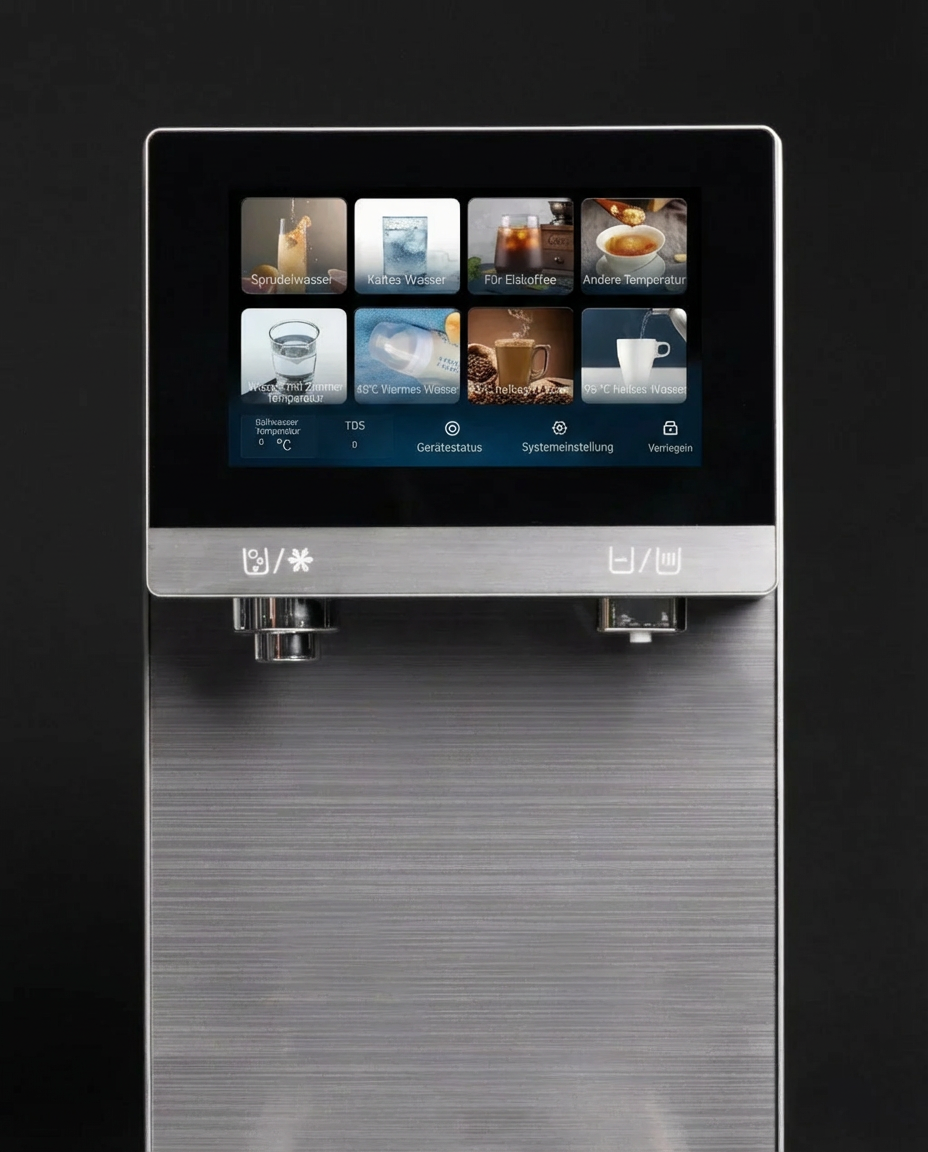 Genießen Sie jederzeit hochwertiges, schadstofffreies Wasser direkt aus der Leitung. Die Sparkling Deluxe bietet drei Temperaturstufen – stilles Wasser raumtemperiert, gekühlt oder heiß – sowie gekühltes Sprudelwasser auf Knopfdruck. Kompatibel mit handelsüblichen CO₂-Flaschen.